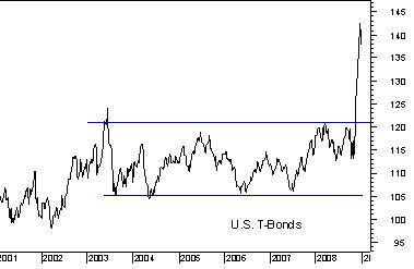 Viel schwieriger ist es auf fallende Kurse zu setzen. Der Verkauf von Anlagen, die man nicht besitzt, sogenannte Shortverkäufe, ist privaten Anlegern generell nicht zu empfehlen. Häufig dauert die Ueberbewertung länger und ist ausgeprägter, als man das vorher erwarten konnte. Nach starken Kursanstiegen der Aktienmärkte empfehlen wir, Positionen in Staatsanleihen einzugehen. Da die Notenbanken dazu neigen nach Turbulenzen die Geldschleusen zu öffnen, kann der Anleger von steigenden Anleihenkursen profitieren.